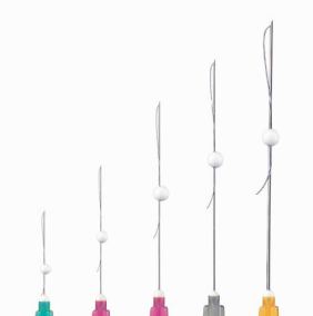 Diese Fäden gibt es in unterschiedlicher Ausführung (je nach Bedarf): Für kleine Knitterfältchen bspw. unter den Augen und zur Verbesserung der Oberflächenstruktur der Haut werden Basic-Fäden verwendet. Die so genannten Screw-Fäden kommen bei Mundfalten und zur Dekolleté-Verjüngung zum Einsatz. Für stärkere Lifting-Effekte werden Fäden mit Widerhäkchen - so genannte Barb-Fäden - verwendet.