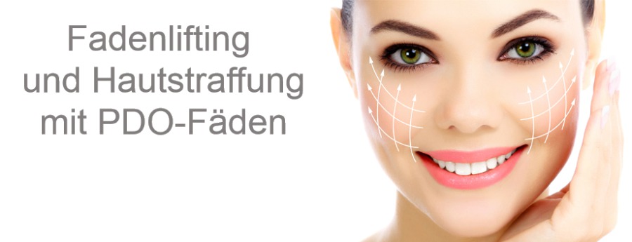 sowie die ästhetische Behandlung bestimmter Bereiche erschlaffter, knitteriger Haut ebenfalls durch Unterlegung von PDO-Fäden (sogenannte Threads)